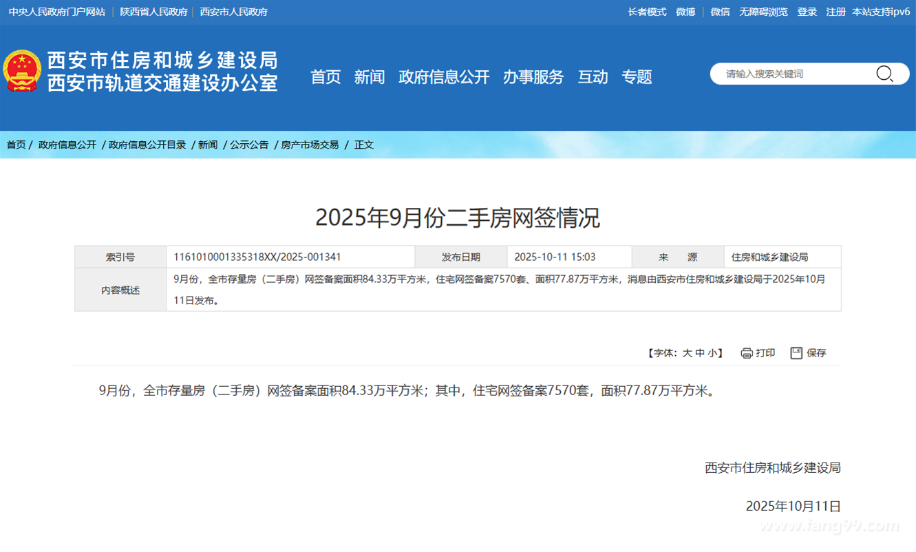 9月份,全市存量房(二手房)网签备案面积84.33万平方米;其中,住宅网签备案7570套,面积77.87万平方米。
