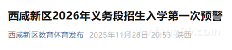根据当前户籍适龄儿童人数,结合随迁子女人数测算,西咸新区部分义务段学校学区内房户一致适龄儿童入学人数已达到学校2026年预计招生计划数,且入学需求仍在持续增长。为保障西咸新区义务段招生入学工作平稳有序,现就2026年西咸新区相关义务段学校招生入学发布预警。