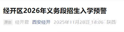 近日,西咸新区和经开区分别发布了“2026年义务段招生入学预警”,公告中提到,部分义务段学校学区内,房户一致适龄儿童人数已达到2026年招生计划数,且入学需求仍在持续增长。并且列举了26所预警学校中,其中小学14所,初中12所。